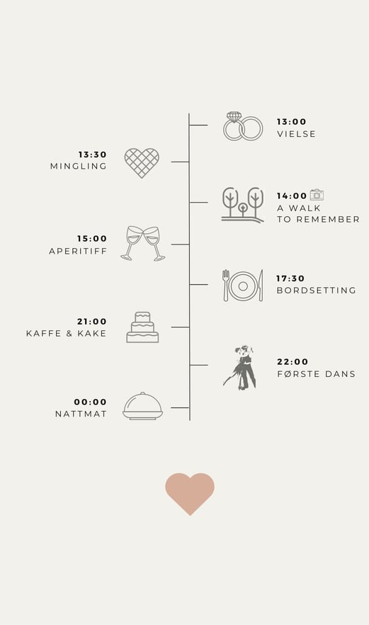 Det er 16 minutter gange mellom vielses- og middagsstedet. Vi har lagt opp til felles avreise til fots. Ved uvær vil det arrangeres alternativ transport.